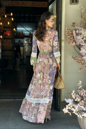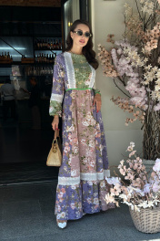 Окунитесь в богемную элегантность с нашим потрясающим платьем! Покорите всех своей оригинальностью и уникальностью. Благодаря легкой ткани это платье создано для того, чтобы вы чувствовали себя свободно и изысканно. Модель платья вдохновлена природой и свободой. В центре внимания - легкое и воздушное платье макси с кружевными вставками, дополненное ярким пояском на талии.