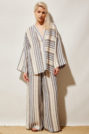 Палаццо из льна с полосатым принтом и высокой посадкой PINA 40160 полоска