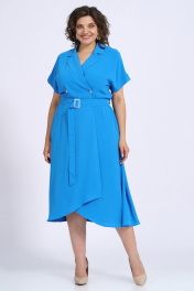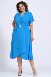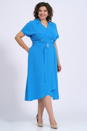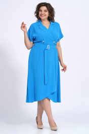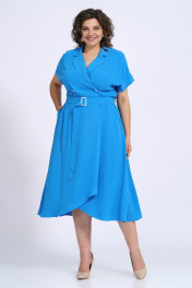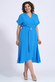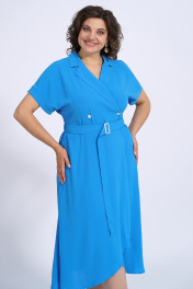 Платье приталенное с запахом и поясом двубортное Пинск-Стиль 150 голубой