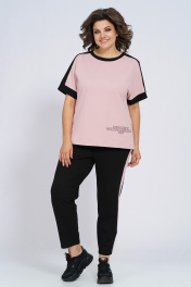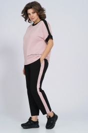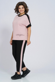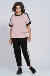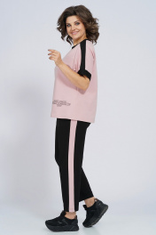 Костюм из трикотажа: футболка и брюки с лампасами для спорта Пинск-Стиль 159 пыльная роза+черный
