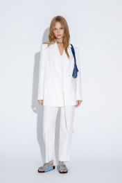 Лен костюм-двойка из жакета и брюк со складками PiRS 4612 молочный