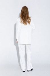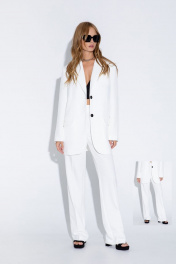 Классические прямые брюки из текстильной ткани. Детали: брюки с высокой посадкой, притачной пояс со шлевками, передние половины с небольшими мягкими складками и заутюженными стрелками, застежка на молнию и пуговицу, боковые карманы. Длина по боковому шву с поясом около 112,5 в размерах 40-46 и около 114 см в размерах 48-52 Длина по внутреннему шву около 80 см