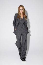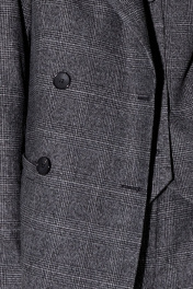 Двубортный жакет свободного покроя из текстильной ткани в клетку. Детали: жакет прямого силуэта, пиджачный воротник, прорезные карманы, спинка со средним швом, втачные двухшовные рукава, жакет на подкладке Длина по спинке около 70/72 см, длина рукава около 61 см