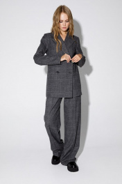 Двубортный жакет прямого силуэта из клетчатой ткани PiRS 4759 серая клетка