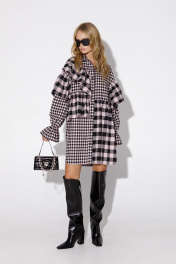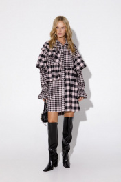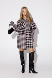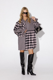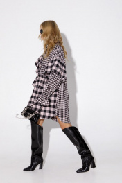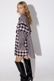 Платье рубашка клетка асимметричное с рукавами и воротником PiRS 4873 розовый