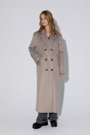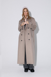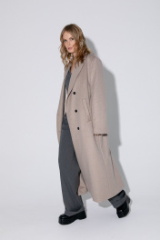 Миди пальто оверсайз с расширенными плечами и двубортной застежкой PiRS 5382 бежевый