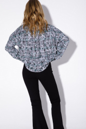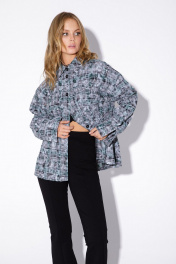 Свободная рубашка в клетку с эффектом потертости. Детали: прямой силуэт, спущенная линия плеча, накладные карманы, застежка на петли и пуговицы, удлиненные рукава с притачными манжетами. Длина по спинке около 66 в размерах 40-46 и около 68 см в размерах 48-52, длина рукава+ плечо около 51+11=62 см