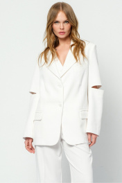 Оверсайз жакет с разрезами по рукавам. Детали: жакет свободного покроя, прямой силуэт, застежка на петли и пуговицы, функциональные карманы, жакет на подкладке. Длина по спинке около 71 см в размерах 40-48 и около 73 см в размерах 50-52, длина рукава около 61 см