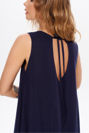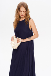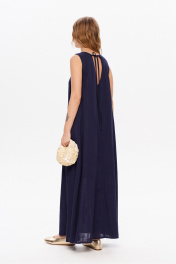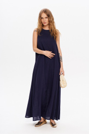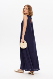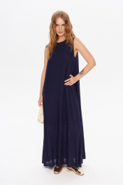 Макси-платье с фигурной спинкой. Детали: трапециевидный силуэт, нагрудные вытачки, средние швы переда и спинки, боковые карманы, подкладка платья- 100% хлопок. Длина платья по боковому шву около 112 см
