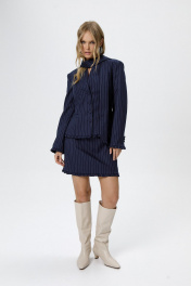 Приталенный жакет с оборками и съемным шарфиком. Детали: жакет полуприлегающего силуэта, цельнокроеный воротник-стойка, рельефные швы переда и спинки, функциональные карманы, застежка на петли и пуговицы, на подкладке. В комплекте съемный шарфик. Длина жакета по спинке около 56 см в размерах 40-46 и около 58,5 см в размерах 48-52, длина рукава с оборкой около 62,5 см.
