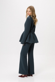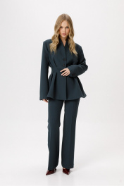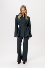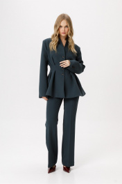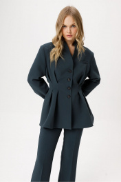 Приталенный жакет со складками и расширенными плечами. Детали: полуприлегающий силуэт с расширенными плечами, цельнокроеный воротник-стойка, застежка на петли и пуговицы, рукава втачные двушхшовные, жакет на подкладке Длина по спинке около 66 см в размерах 40-46 и около 67,5 см в размерах 48-52, длина рукава около 61 см