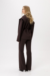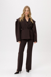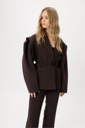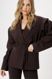 Оверсайз жакет со съёмным поясом. Детали: прямой силуэт, удлинённая линия плеча, втачной одношовный рукав с ассиметричными складками, функциональные карманы, центральная застёжка на петлю и пуговицу, жакет на подкладке. Длина по спинке в размерах 40-46 около 67 см, в размерах 48-52 около 70 см, длина рукава около 61 см