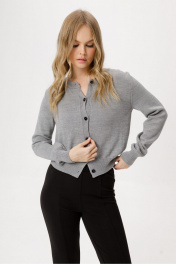 Комплект-двойка из вязаного базового джемпера на пуговицах из полушерстяной пряжи и трикотажных облегающих брюк-клеш. Детали: джемпер прямого силуэта, застежка на петли и пуговицы. Брюки с высокой посадкой, перед с рельефными швами, пояс с резинкой, брюки без карманов. Длина брюк по боковому шву с поясом около 107 см, по внутреннему шву около 79,5 см