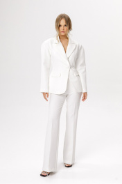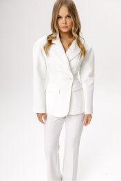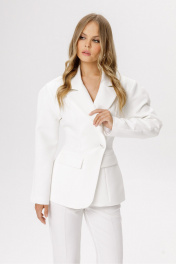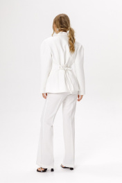 Приталенный жакета О-силуэта со шнуровкой по спинке (приобрести брюки с фото можно по арт. 6343, приобрести шорты с фото можно по арт. 6621). Детали: жакет приталенного силуэта, расширенная линия плеч, пиджачный воротник, рукава фигурной формы с верхним швом, спинка со шнуровкой и застежка на две пуговицы, с помощью которых можно регулировать прилегание по талии, на подкладке. Длина по спинке с поясом около 67,5 см в размерах 40-46 и около 69,5 см в размерах 48-52, длина рукава около 61 см+ расширенное плечо.