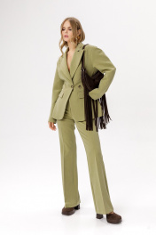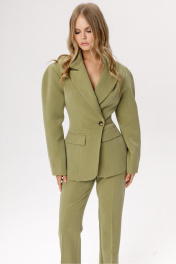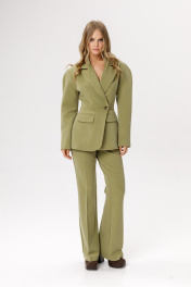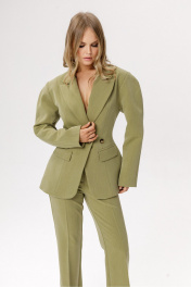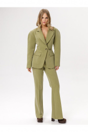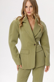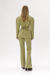 Приталенный жакета О-силуэта со шнуровкой по спинке (приобрести брюки с фото можно по арт. 6343, приобрести шорты с фото можно по арт. 6621). Детали: жакет приталенного силуэта, расширенная линия плеч, пиджачный воротник, рукава фигурной формы с верхним швом, спинка со шнуровкой и застежка на две пуговицы, с помощью которых можно регулировать прилегание по талии, на подкладке. Длина по спинке с поясом около 67,5 см в размерах 40-46 и около 69,5 см в размерах 48-52, длина рукава около 61 см+ расширенное плечо.