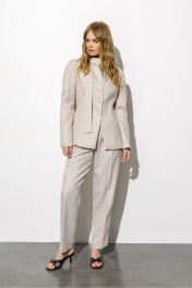 Классические укороченные брюки из костюмной ткани в «ёлочку» (приобрести жакет с фото можно по арт. 6764). Детали: брюки на притачном поясе со шлевками, передние половины с небольшими мягкими складками и заутюженными стрелками, застежка на молнию и пуговицу, боковые карманы. Длина брюк по боковому шву с поясом около 98 см в размерах 40-46 и около 99,5 см в размерах 48-52. Длина по внутреннему шву около 71,5 см