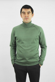 Свитер мужской, второго слоя одежды, прямого силуэта с длиным рукавом реглан. Круглый вырез горловины закеттлеван отложным свитерным воротником- (ластик 1х1 высотой 18,0см+-1,0.