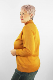 Свитер прямого силуэта с длинным рукаом "реглан". Низ изделия и рукавов заработан ластиком, высотой в готовом виде 6,0см+-0,5см(станы),6,5+-0,5см (рукава). Воротник - двойная ластичная стойка 5,5см+-0,5см в готовом виде.