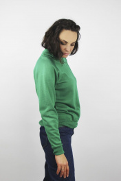 Свитер прямого силуэта, второго слоя одежды, с длиным рукавом реглан. Круглый вырез горловины обработан высоким ластичным воротником высотой в готовом виде 16см+-1,0см