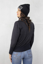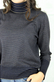 Свитер женский,второго слоя одежды,регулярный,полуприлегающего силуэта с длинным втачным рукавом. Круглый вырез горловины обработан высоким ластичным воротником-ластик1х1 высотой в готовом виде 16см+-1,0см в том числе сдвоенная кулирная гладь 1,0 см+-0,2см. Низ стана и рукавов заработан ластиком 1х1