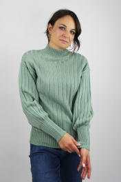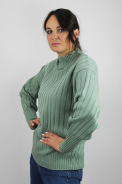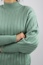 Свитер женский второго слоя одежды прямого силуэта со спущенной линией плеча.Круглый вырез горловины обработан одинарной бейкой