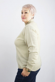 Cвитер прямого силуэта с длинным втачным рукавом.Круглый вырез горловины обработан двойныым ластичным воротником-стойкой 5,5+-0,5см. Низ станаов и рукавов заработан ластиком