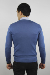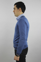 Джемпер незначительно заужен к низу с длинным рукавом.V-образный вырез горловины обработан двойной ластичной бейкой (полукетт), высотой в гот. виде 2,5см+-0,2см. Низ изделия и низ рукавов заработан ластиком 1х1