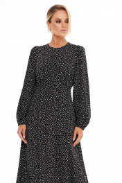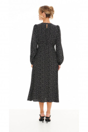 Платье: Фактура: гладкая. Ткань: плательно-блузочная. Силуэт: Х - силуэт. Вырез горловины: круглый. Рукава: длинные втачные. Застежка: сбоку потайная молния, навесная петля и пуговица по горловине спинки. Конструктивные элементы: подрез выше линии талии, по переду односторонние складки от подреза, по спинке сборка от подреза, сборка по окату рукава, эластичная тесьма по низу рукавов. Подкладка: есть (по лифу).