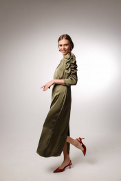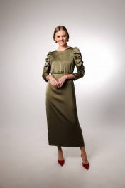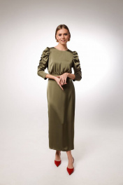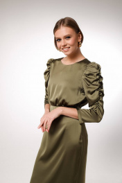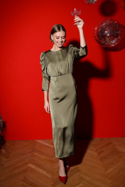 Элегантное платье из сатина, отрезное по линии талии. По окату рукава выполнена драпировка, которая не увеличивает виузально плечи, а наоборот добавляет легкости и игривости образу. Низ платья ( от талии) прямой, что позволит носить его при любом типе фигуры.