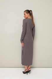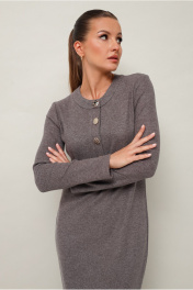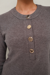 Стильное платье полуприлегающего силуэта, выполнено из трикотажного полотна. Горловина округлой формы, с центральной застежкой на петли и 4 разных пуговицы. Рукава длинные втачные. В боковых швах обработаны высокие разрезы.