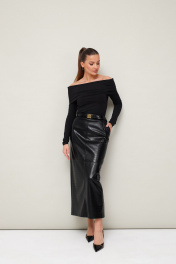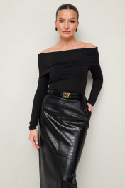 Черная блузка с открытыми плечами и эластичным материалом PUR PUR 11-340