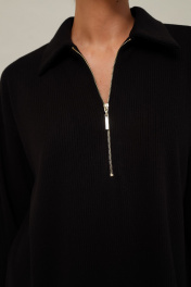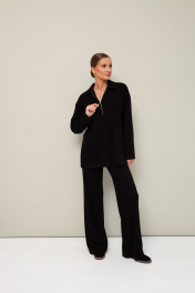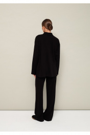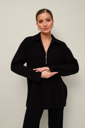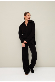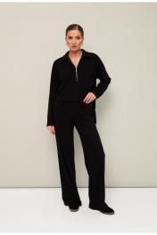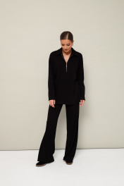 Комфортный брючный комплект с джемпером, выполнен из качественного трикотажного полотна. Джемпер прямого силуэта. Горловина с отложным воротником с застежкой на молнию. Длинные рукава со спущенной линией втачивания плеча. В боковых швах обработаны высокие разрезы. Брюки прямого кроя с посадкой на талии. Пояс обработан эластичной резинкой.