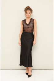 Топ прямого силуэта, выполнен из изысканного французского кружева. V-образный вырез горловины обработан кружевной отделкой.