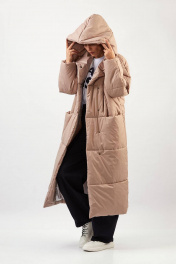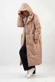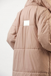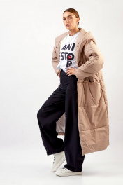 Пальто с капюшоном: - прямой силуэт - застёжка на потайные кнопки - передние карманы в горизонтальном шве - рукава-реглан, двухшовные, зауженные к низу - трикотажные манжеты внутри по низу рукавов - стёганые перед, спинка, рукава и капюшон - на подкладке; верх подкладки переда и спинки — флис - утеплитель 200 г/м² - температурный режим до –25 °C