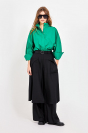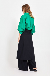 Блуза: - прямой силуэт - воротник- высокая стойка - застежка на пуговицы по потайной планке - цельнокроеный рукав с манжетой с застежкой на пуговицу - низ блузы частично на резинке.