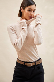 Водолазка: - прилегающий силуэт; - длина ниже линии талии; - рукава: втачные, удлиненные прилегающие; - высокий воротник-стойка с мягкой драпировкой на шее.