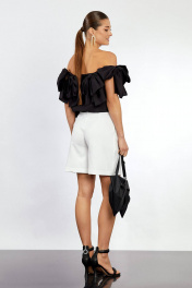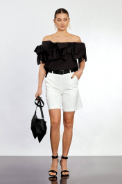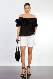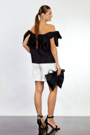 Топ: - силуэт прямой - перед и спинка одинаковые - с открытым декольте, вырез горловины горизонтальный, бретели спущены - вдоль линии горловины и плеч расположено шесть бантов НЕОБХОДИМО ОТПАРИТЬ! - отправляется только в фирменной упаковке