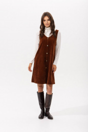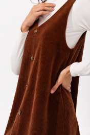 Стильный сарафан-комбинезон из вельвета с пуговицами Этот стильный сарафан-комбинезон из вельвета станет ярким акцентом вашего гардероба. Модель выполнена в классическом фасоне с V-образным вырезом и декоративными пуговицами по центру, что добавляет изысканности и оригинальности образу. Основные особенности: Материал: Натуральный вельвет — прочный, приятный на ощупь и устойчивый к износу. Цвет: Глубокий коричневый и черный оттенки, которые идеально подходит для осенне-зимнего сезона. Фасон: Удобный крой с завышенной талией и свободным силуэтом, который подчеркнет фигуру и обеспечит комфорт в течение всего дня. Детали: Декоративные пуговицы по центру, которые добавляют модели уникальный шарм. Универсальность: Легко сочетается с водолазками, футболками или блузами, что позволяет создавать разнообразные образы — от повседневных до более официальных. Для кого: Идеальный выбор для тех, кто ценит комфорт, стиль и практичность. Подходит для работы, прогулок по городу или встреч с друзьями. Создайте неповторимый образ с этим сарафаном-комбинезоном!