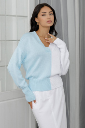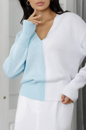 Белый и голубой джемпер с разноцветным дизайном и заниженной линией плеч Romgil РВ0023-ХЛ2 бледно-голубой,белый