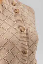 Этот модный жакет из мягкого трикотажа станет ярким акцентом в вашем гардеробе. Насыщенный цвет придаёт модели свежесть и актуальность, а оригинальный узор "ромбы" и пуговицы добавляют индивидуальности и стиля. Жакет выполнен с короткими рукавами и застёжкой на пуговицы, что делает его универсальным и удобным.Жакет можно дополнить стильными аксессуарами, лёгкой блузкой или классическими белыми брюками, чтобы создать завершённый и модный образ. Он отлично сочетается с изысканной бижутерией и туфлями на каблуке для вечернего выхода или с кроссовками для повседневного лука. Идеальный выбор для тех, кто ценит стиль, комфорт и оригинальность!