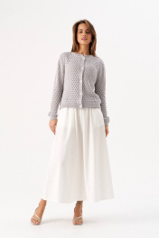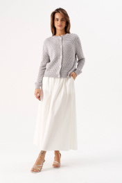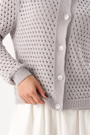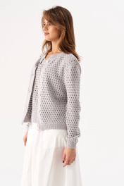 Этот элегантный женский жакет выполнен из мягкого вязаного материала с открытой вязкой, что придает ему легкость и изысканность. Модель имеет классический крой с длинными рукавами и застежкой на пуговицы, что делает его универсальным для любого гардероба. Особенности: Материал: Вязаный, мягкий и приятный к телу. Длина: Короткий крой, идеально подходит для ношения с юбками или платьями. Застежка: Пуговицы по всей длине. Рукава: Длинные, заканчиваются резинкой для комфортной посадки. Этот жакет станет отличным дополнением к вашему образу, добавляя нотку элегантности и современности. Носите его с юбками, платьями или брюками для создания различных стильных луков.