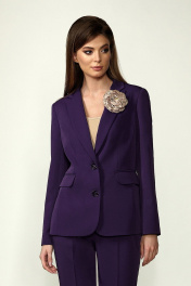 Жакет на подкладке приталенного силуэта с прорезными карманами с клапанами по переду. Воротник-английский. Рукава-двухшовные. Застегивается на две пуговицы. Декоративная брошь-цветок входит в комплект.