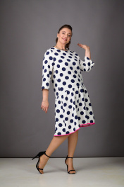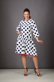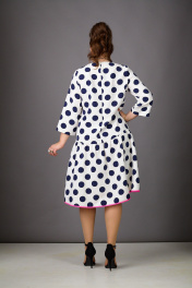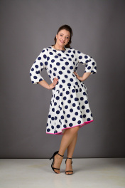Ах, какая находка - платье в эффектные горохи! Невероятно красивое, комфортное платье станет вашим пропуском в лето! Роскошное платье трапециевидного силуэта из плательной ткани. Сочные горохи, разница в длине между передом и спинкой, яркая полоса по низу делают платье неповторимым. Нижняя присборенная часть платья добавит легкости. Рукава втачные, трехчетвертные. По спинке - средний шов, молния. Cкрасьте момент с Rosheli!