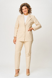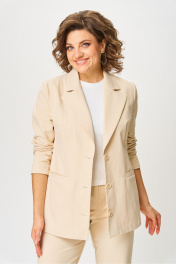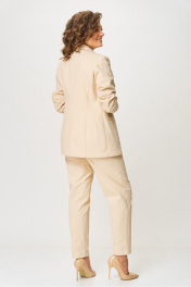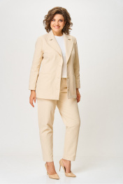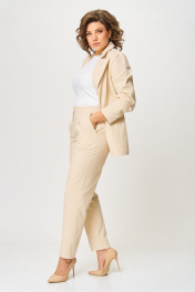 Костюм женский 2-ух предметный из джинсовой ткани. Жакет женский из джинсовой ткани, полуприлегающего силуэта. По переду жакета расположены рельефы. Прорезной карман с листочкой. Спинка жакета со средним швом и рельефом. Рукав двухшовный, втачной. Воротник и подборта пиджачного типа. Жакет застегивается на петли-пуговицы. Жакет БЕЗ ПОДКЛАДКИ. Промеры на примере 48 размера: ОГ 104, ОТ 98, ОБ 112 см. Длина жакета по спинке 72 ± 1см, Длина рукава: 58 ± 1см Промеры на примере 56 размера: ОГ 118, ОТ 114, ОБ 126, длина рукава 60 см, длина по спинке 74 см. Брюки женские из джинсовой ткани, полуприлегающего силуэта, слегка заужены к низу. По переду брюк расположена складка и карман. Пояс притачной, по задней части резинка. Застежка брюк на петлю-пуговицу. Промеры на примере 48 размера: ОТ 78, ОБ 106. Длина брюк по боковому шву с поясом - 101 ± 1см Промеры на примере 56 размера: ОТ 94, ОБ 120. Длина брюк по боковому шву с поясом - 103 см