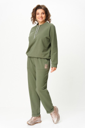 Джемпер женский из трикотажной хлопковой ткани (трехнитка). Рукав реглан. Низ рукава обработан притачной манжетой. Низ изделия оформлен притачным поясом. На спинке настрочен декоративный элемент. Вырез горловины круглый, обработан бейкой со шнуром. Промеры на примере 50 размера: ОГ 126 см, ОБ 112 см, длина по спинке 69 см. Длина рукава от крайней точки шеи: 75 см На модели надеты брюки: 2260