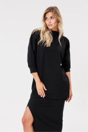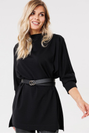 Черный трикотажный джемпер с разрезами и коротким передом PRATA wear S007 черный - фото 1