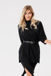 Черный трикотажный джемпер с разрезами и коротким передом PRATA wear S007 черный - фото 6