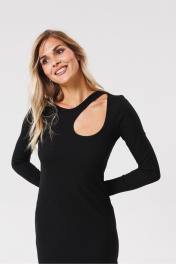 Круглогоднее трикотажное платье с разрезом и вырезом PRATA wear S021 черный
