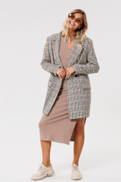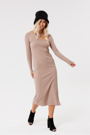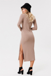 Круглогоднее трикотажное платье с разрезом и вырезом PRATA wear S021 капучино