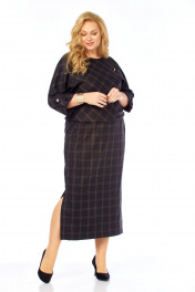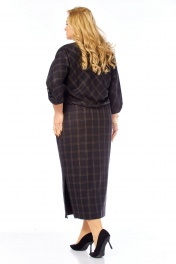 Силуэт полуприлегающий. Рукав цельнокроеный, по форме «летучая мышь». Низ рукава задрапирован патой с застёжкой на пуговицу. Длина рукава от горловины 57см. Горловина закруглённая, на обтачке. По линии талии платье отрезное. Верхняя часть платья на подкладке. По линии подреза выполнена сборка на резинку. По бокам нижней части переда выполнены карманы с косой линией входа. Внизу по боковым швам платье с разрезами. Длина платья по спинке 126см. Платье выполнено из ткани костюмно-плательной группы. 48 р. ПОБ 54